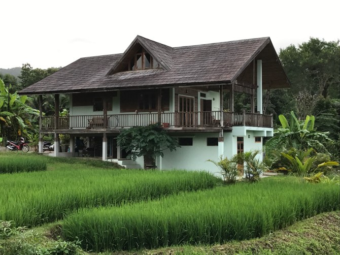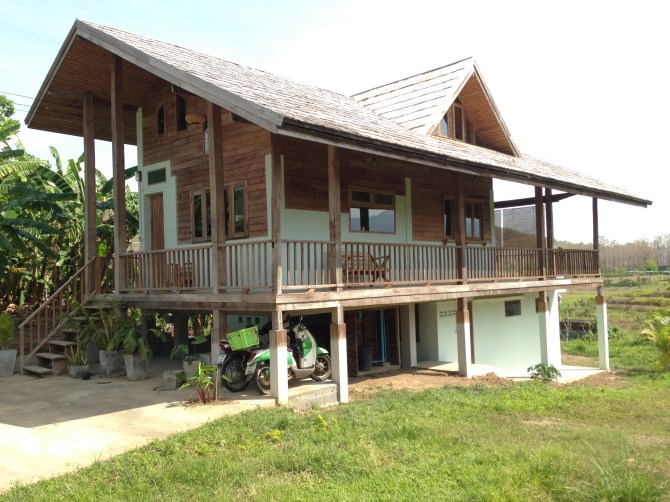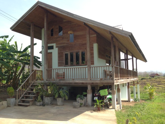 New to the market, this is a stunning new build that has a lot to offer! A unique mix of traditional and modern features, this house was built from reclaimed wood and boasts a sustainable roof made from bamboo, which blends into the natural surroundings. It is a 2/3 bedroom house with panoramic views of the Pai valley.