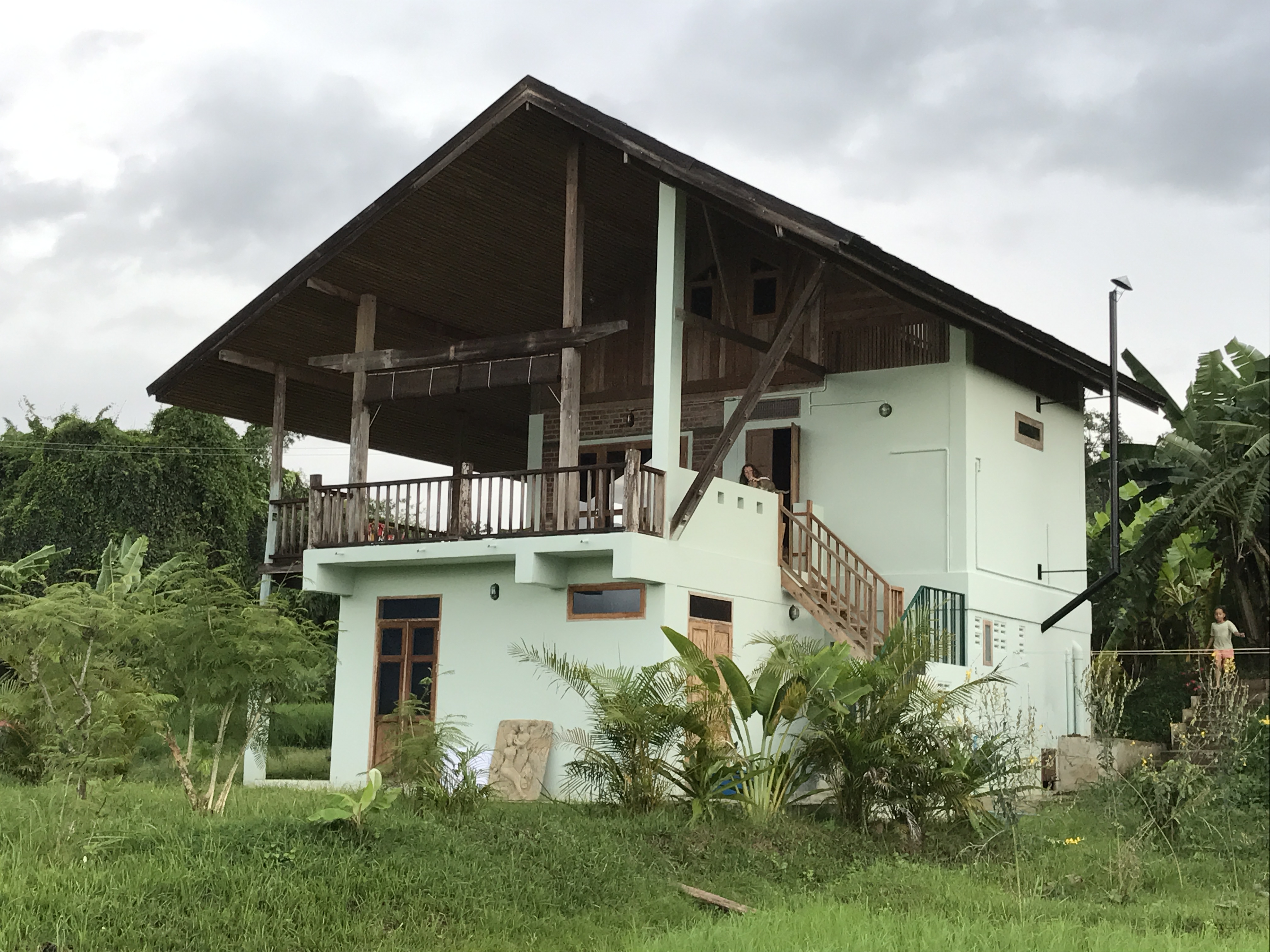 A lot of thought has gone into the positioning and the layout of this house and its a pleasure just to explore the unique features and workmanship. The house is spread across 3 levels. There are two bathrooms – one as an on-suite for the master bedroom and includes a sauna while the other has a hot tub and serves the main living area and the second bedroom. A third room is located up another level, which can be used as a work space, or a kids playroom. The entrance to the house takes you into a stunning kitchen (fully equipped and well designed), where there is also a counter bar for breakfast and welcoming guests. Then there is a hallway that leads you out to the covered balcony with one of the best views in Pai and a continuous summer breeze that calms the mind, body and spirit π